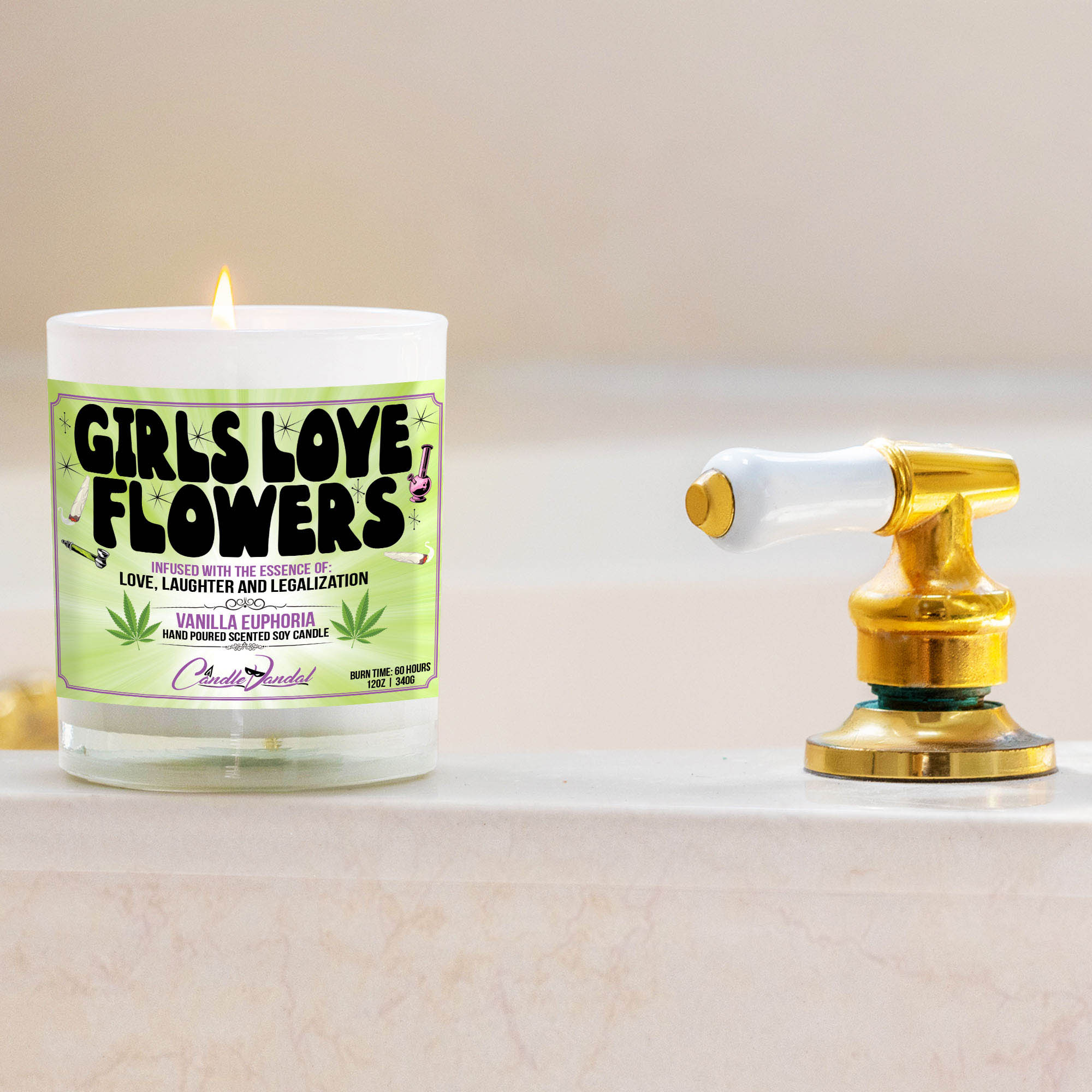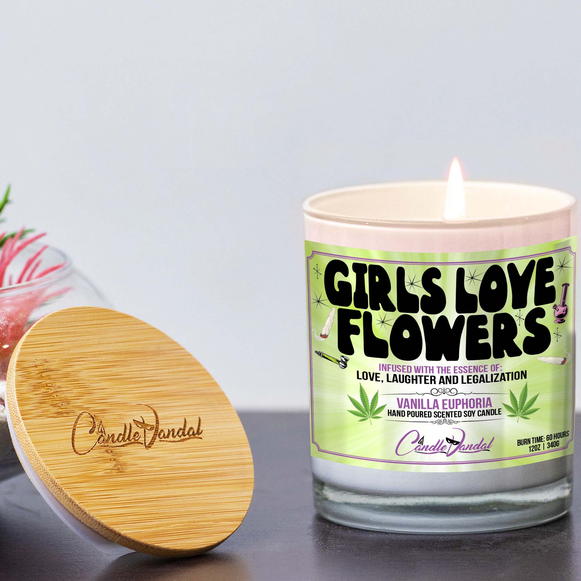 Thank you for checking out this ridiculously fun Girls Love Flowers funny marijuana stoner humor candle. We would love for you to add this amazingly funny candle to your shopping cart and give it a nice home. If you love our candles, please tell every single person you know (and maybe even a few that you don’t) about our awesome candles.